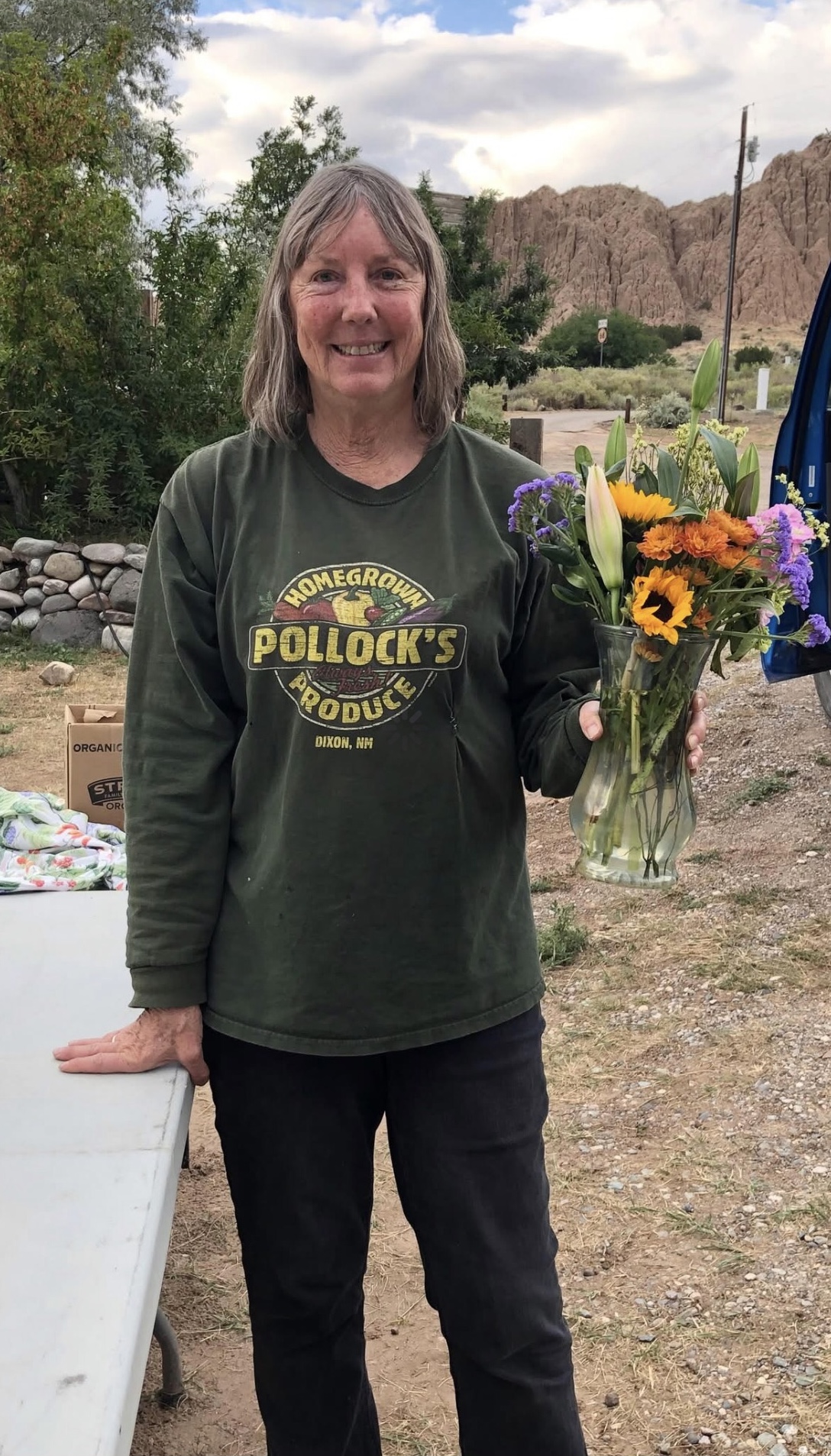 Barbara Jo Pollock moved from Woodland, CA to Dixon 20 years ago with an Agronomy degree and a keen desire to be a farmer. She and her husband, Daniel Frederick Pollock, whose parents had owned and operated an ornamental plant nursery in San Diego were both looking to relocate in their retirement and made their way to Northern New Mexico where they soon were told that to be able to grow they would need to be at an altitude lower than 6000 feet.